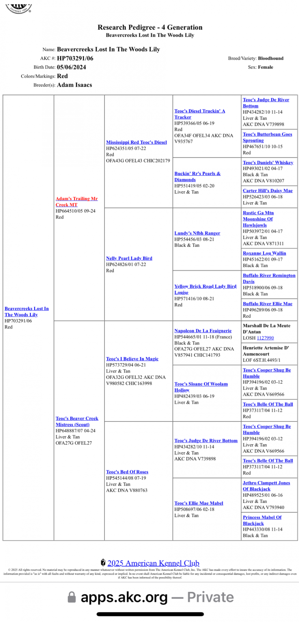 Fallon’s Pedigree. Fallon had an official AKC name change when she came to me.